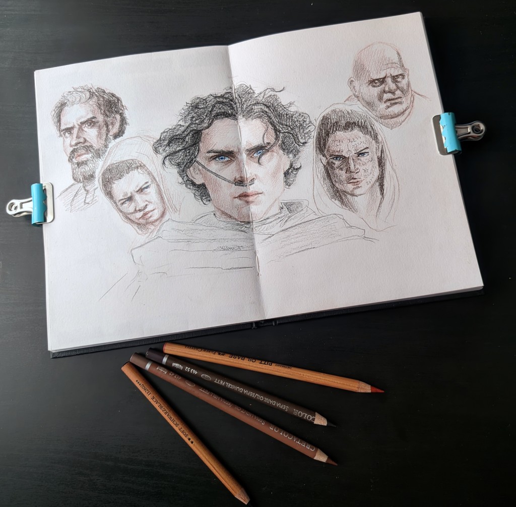 Artists I'm inspired by. For every head different material: pencil, ballpoint pen, brush pen, colored pencils + ink, watercolour