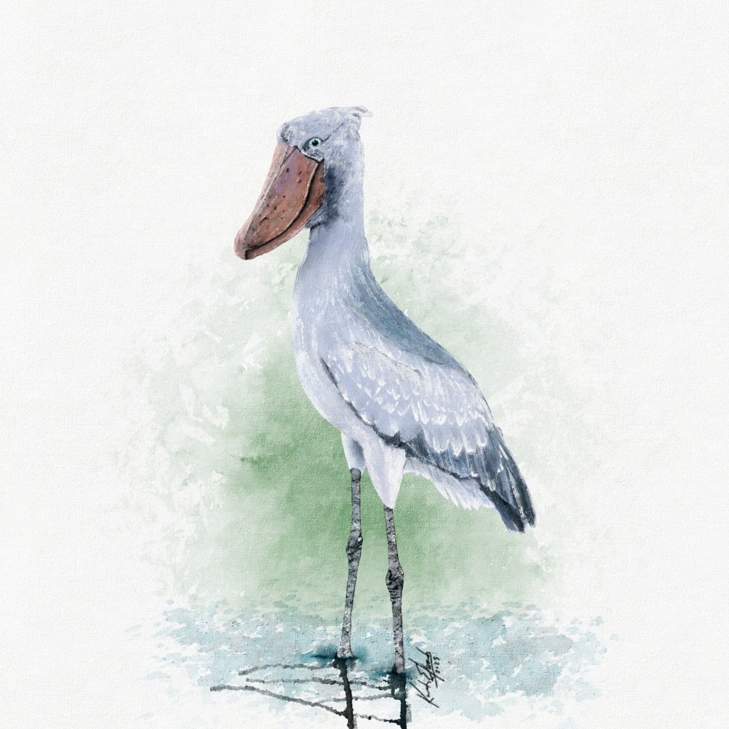 Look at this cutey—a shoebill stork done in watercolors. I wanted to do something different from botanicals but still practice simple watercolors.