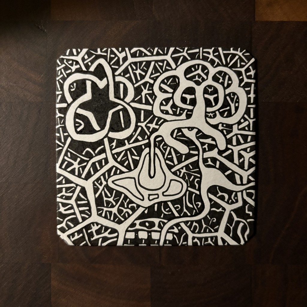 32 drawings in 3 weeks! Front & Back, 9cm square card stock, 05 Micron & Zebra Sarasa
