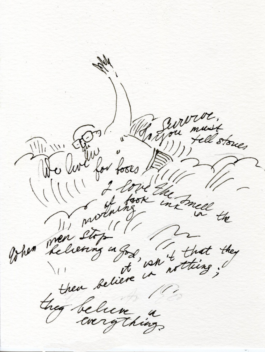 Umberto Eco (b. 1932) Eco says that he is able to be productive during the brief “interstices” in the day. He told The Paris Review’s interviewer: “This morning you rang, but then you had to wait for the elevator, and several seconds elapsed before you showed up at the door. During those seconds, waiting for you, I was thinking of this new piece I’m writing. I can work in the water closet, in the train. While swimming I produce a lot of things, especially in the sea. Less so in the bathtub, but there too.” - From Daily Rituals: How Artists Work by Mason Currey “When men stop believing in God, it isn’t that they then believe in nothing: they believe in everything.” ― Umberto Eco #dailyrituals #inktober #UmbertoEco @masoncurrey