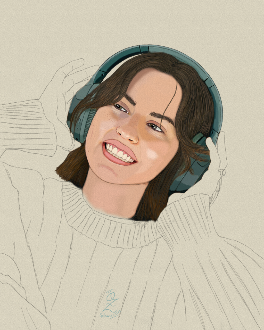 Model with Headphones Portrait Color Sketch by Oz Galeano