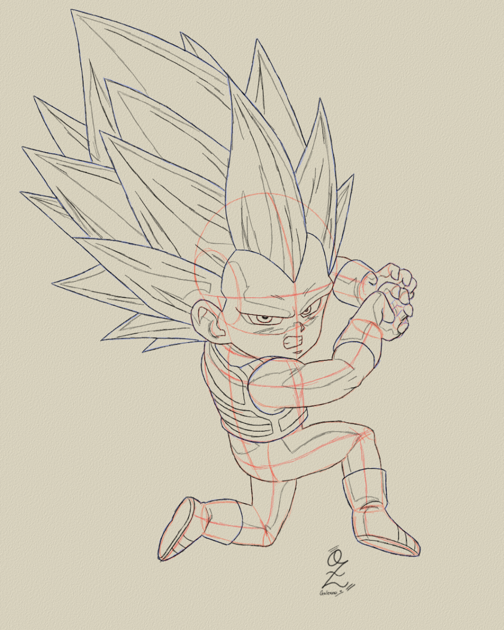 Vegeta SSJ3 Drawing Sketch Study by Oz Galeano