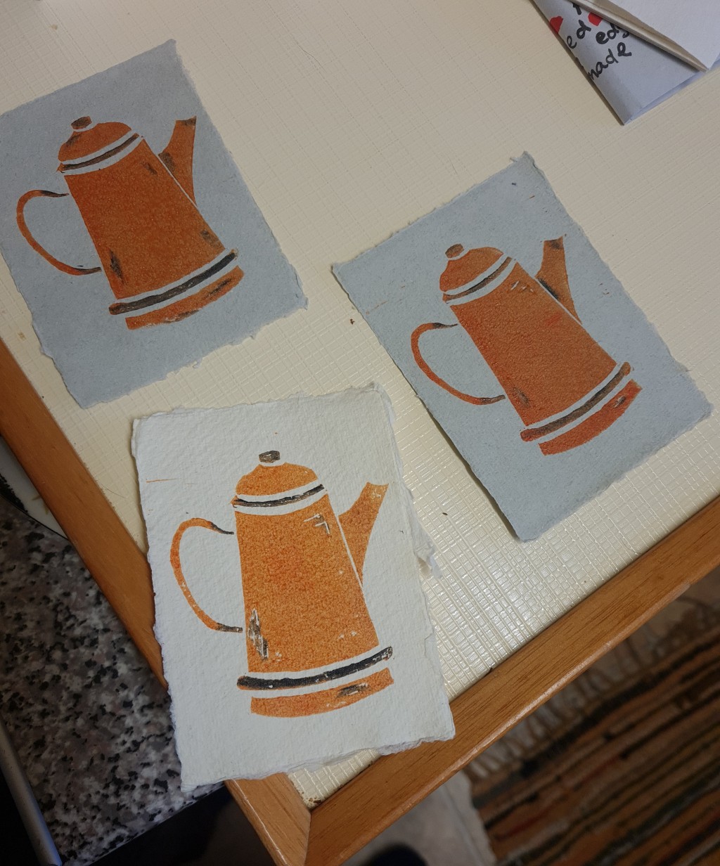 A lino print that I made early art therapy. This was my second lino cut, after my practice cut, and the third I've done in my life. There are mistakes but I'm.still super happy with the outcome.