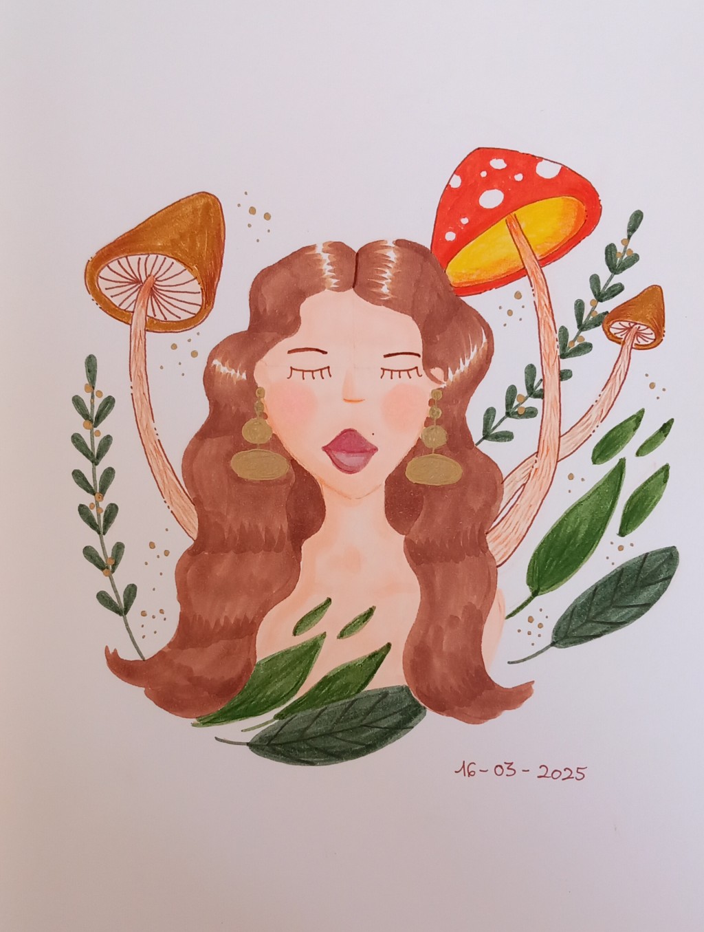 Marker, coloured pencil and gold marker on marker paper.