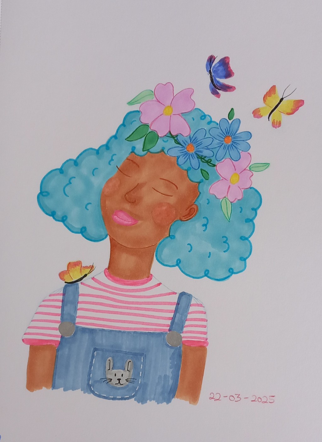 butterflies, drawing, flowers, illustration, people, spring, traditional art