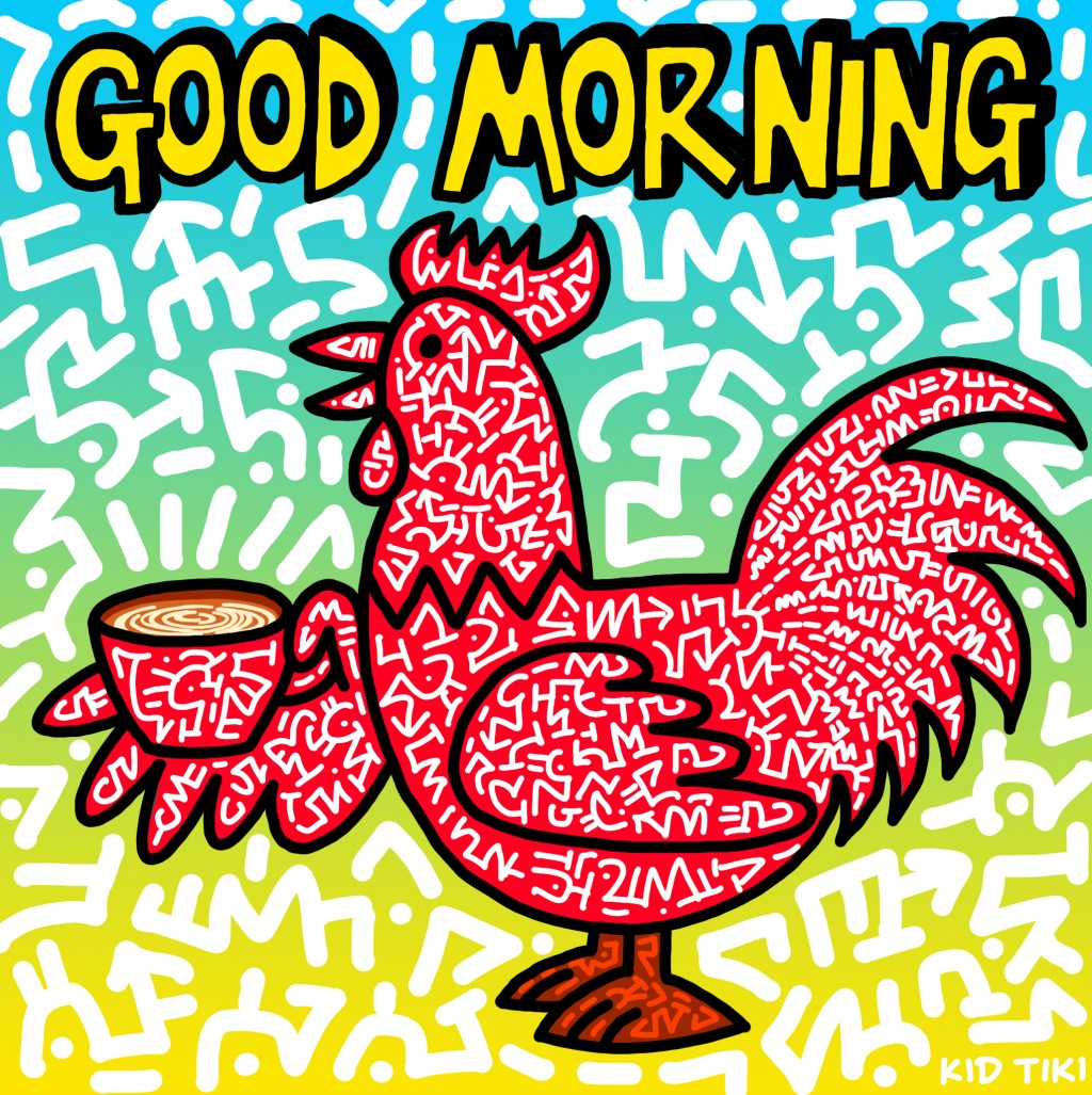 rooster, coffee, doodle