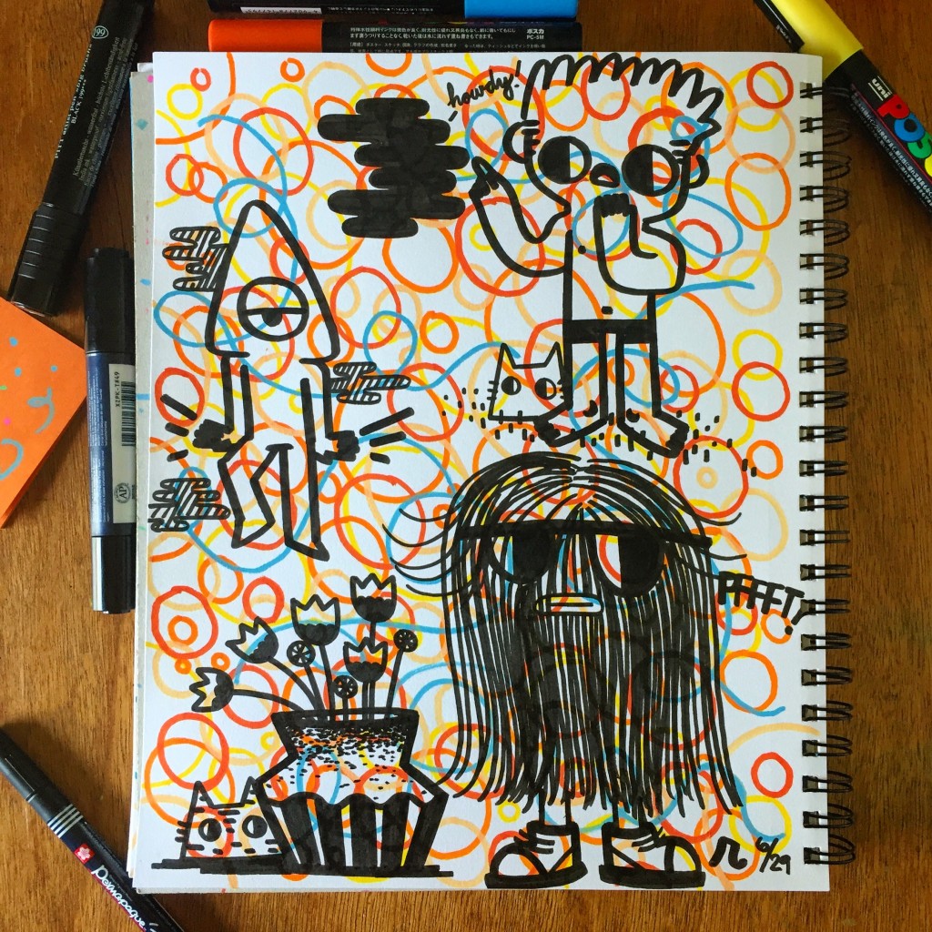 Page of doodles from a live drawing session.