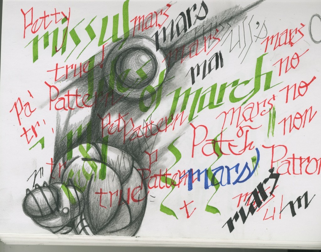 Calligraphy doodles and pencil drawing