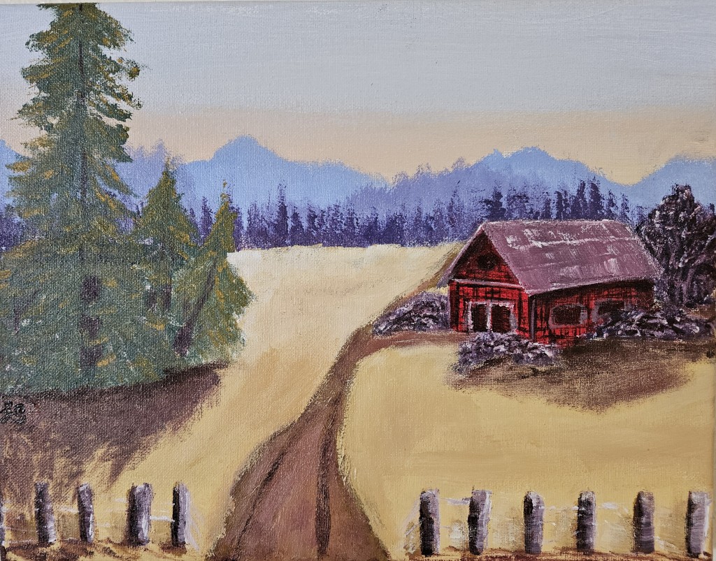 acrylic, landscape, old, painting