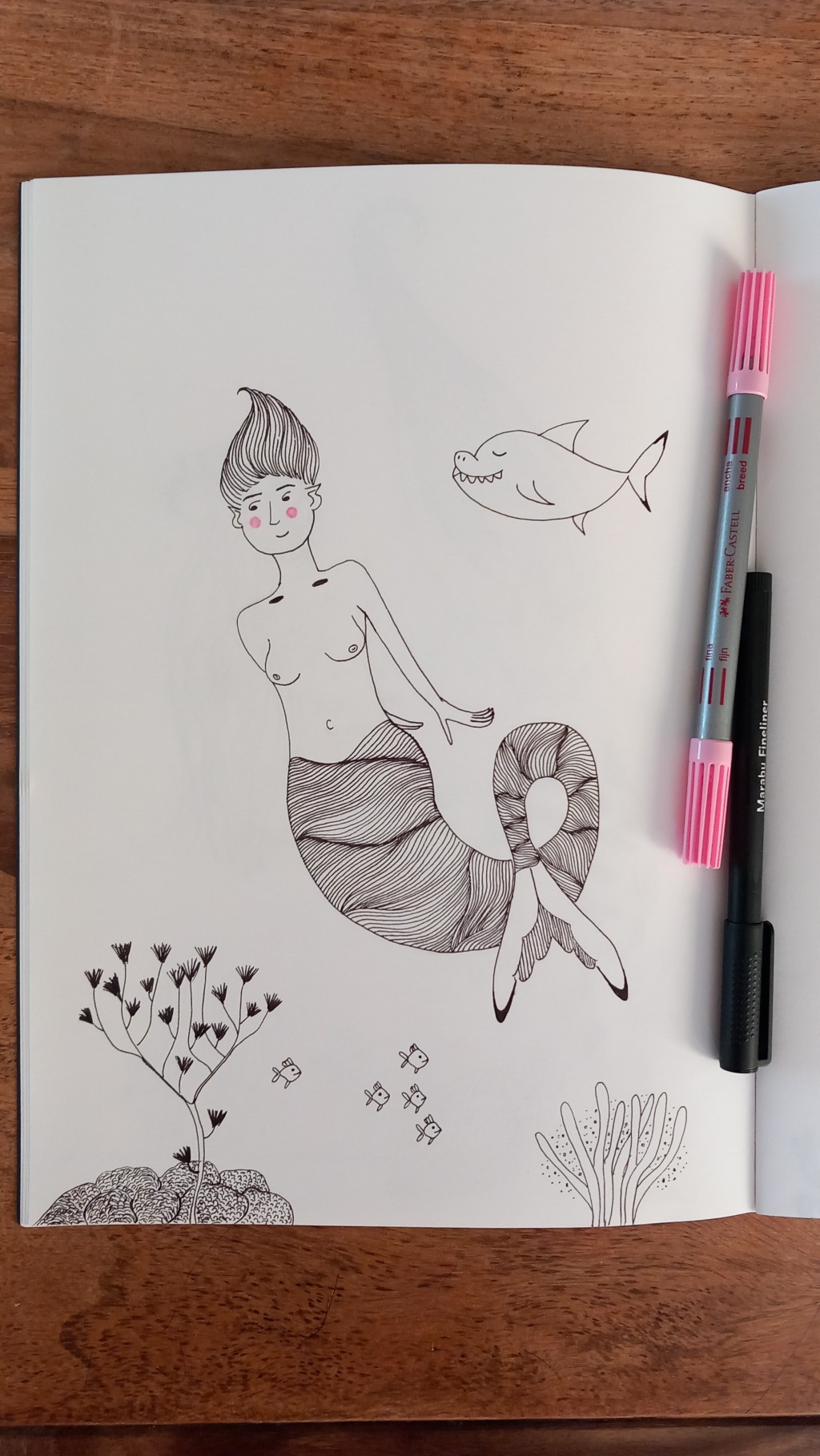 Scrap paper corals and fineliner fishies.