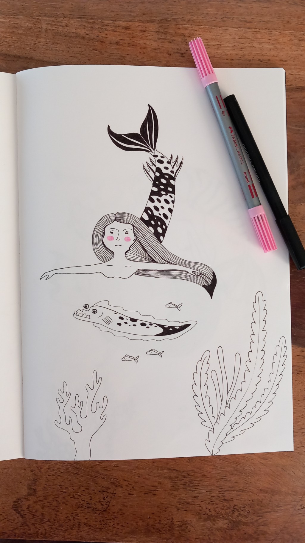 Size A4, done with fineliner and highlighter pen.