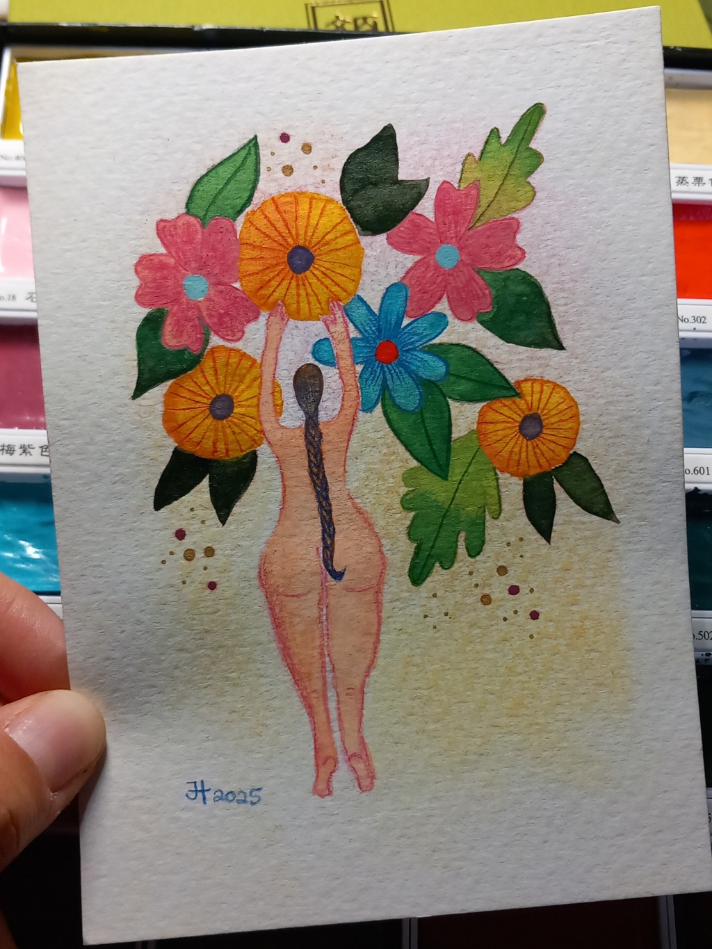 Watercolour and coloured pencil on watercolour paper.
