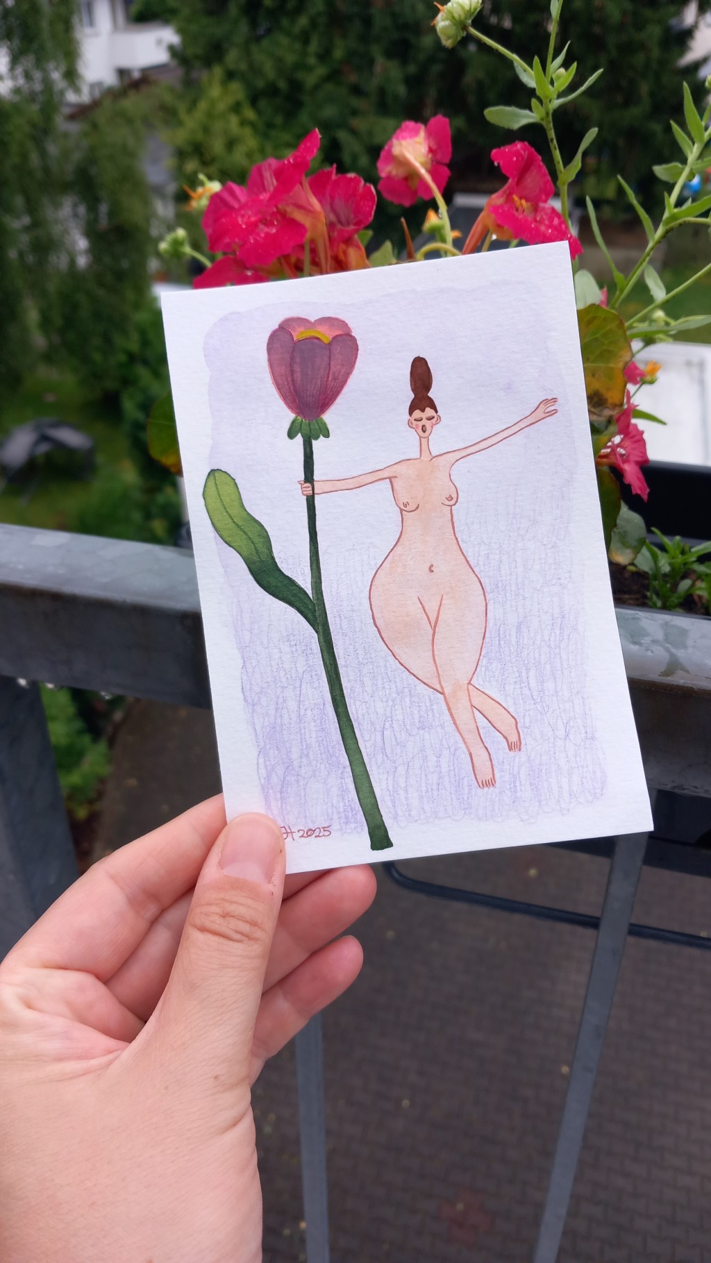 drawing, flowers, illustration, mixed media, people, traditional art, watercolour