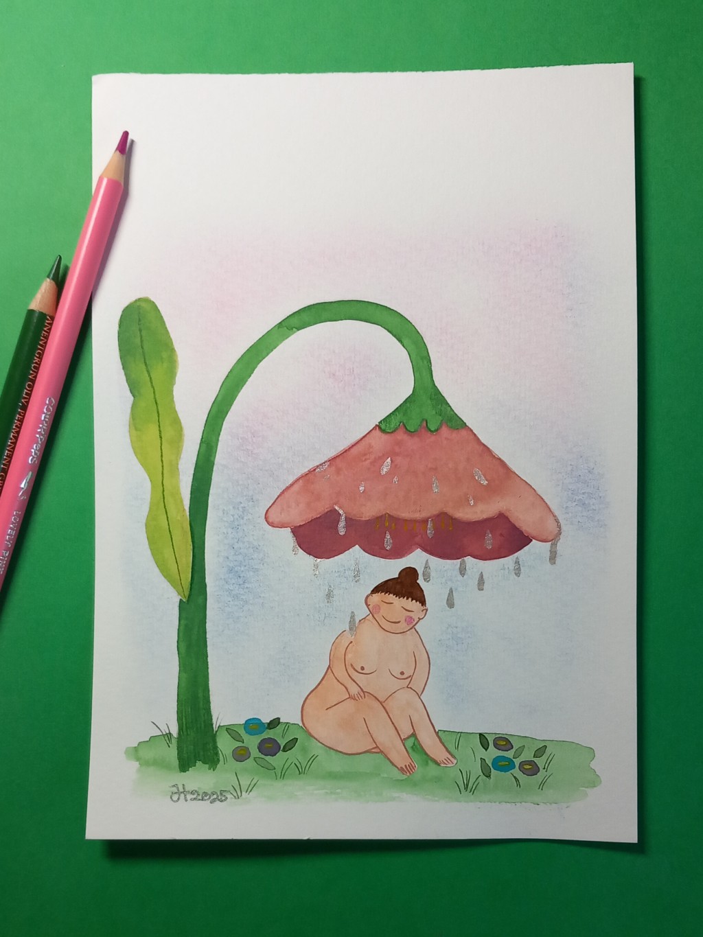 colored pencil, drawing, illustration, mixed media, nature, people, traditional art, watercolor, whimsical illustration
