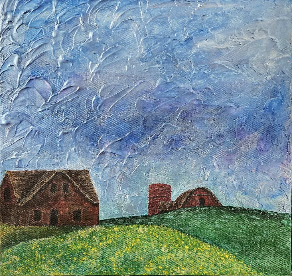 acrylic, old barn, painting