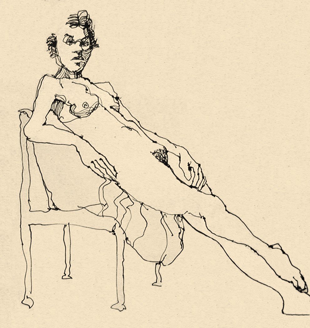 pen and gouache on paper towel