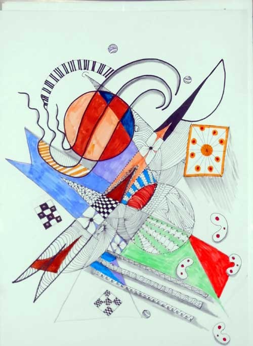 A tribute to Wassily Kandinsky. Painters do lots of doodling. Kandinsky played around with certain shapes again and again, so I thought I would too. I took shapes from lots of his paintings and moulded them into a doodle. Kandinksy was very meticulous wit