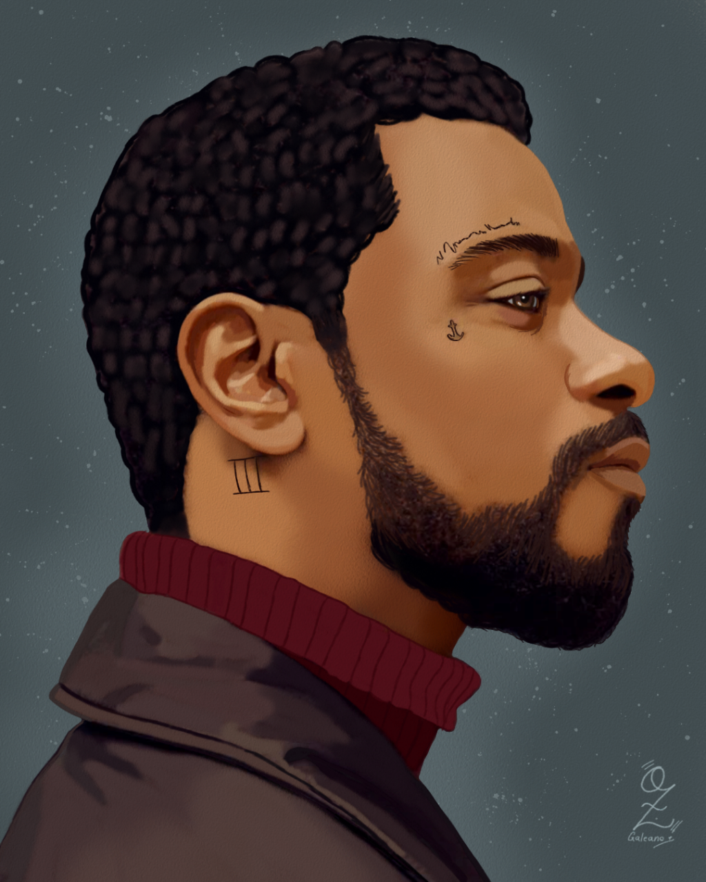 Side Face Model Portrait Art by Oz Galeano