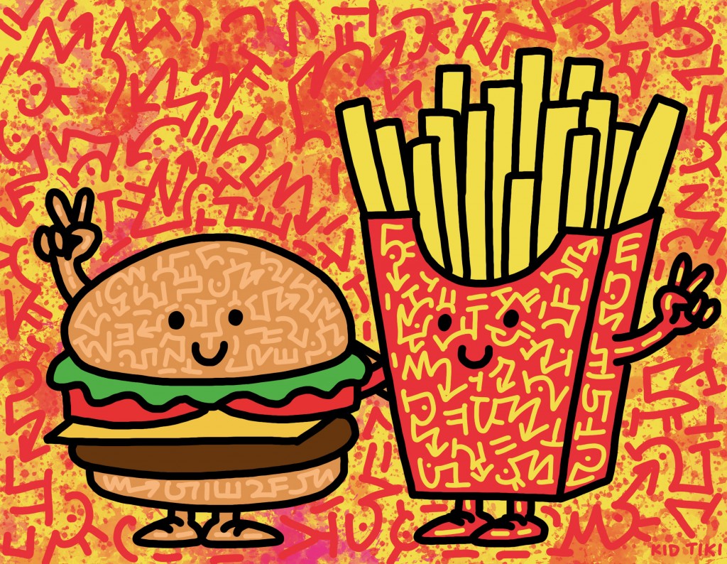 hot fries, burger, doodle, yum