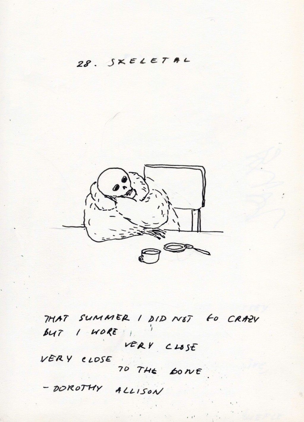 Inktober day 28. Skeletal. "That summer I did not go crazy But I wore very close Very close to the bone. " - Dorothy Allison