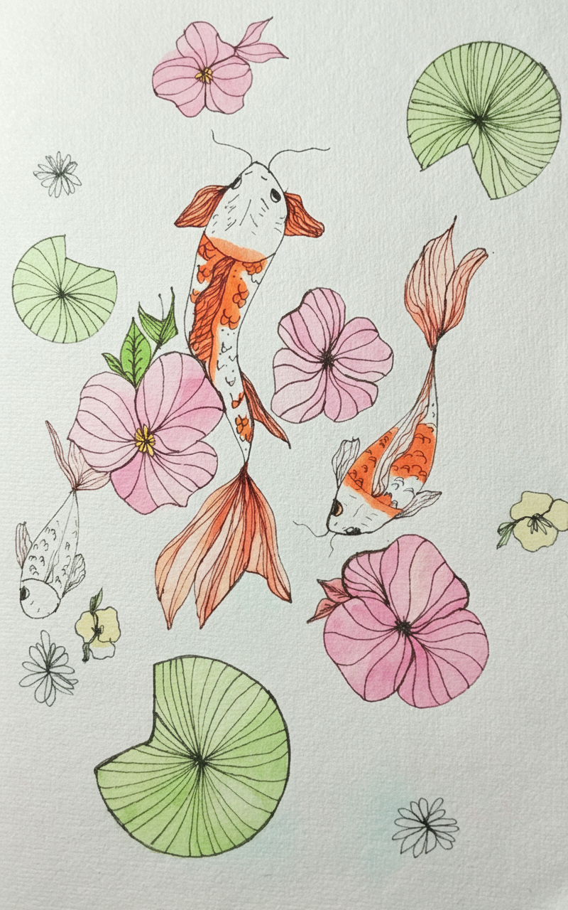 Drawn in pencil and colored with watercolor.