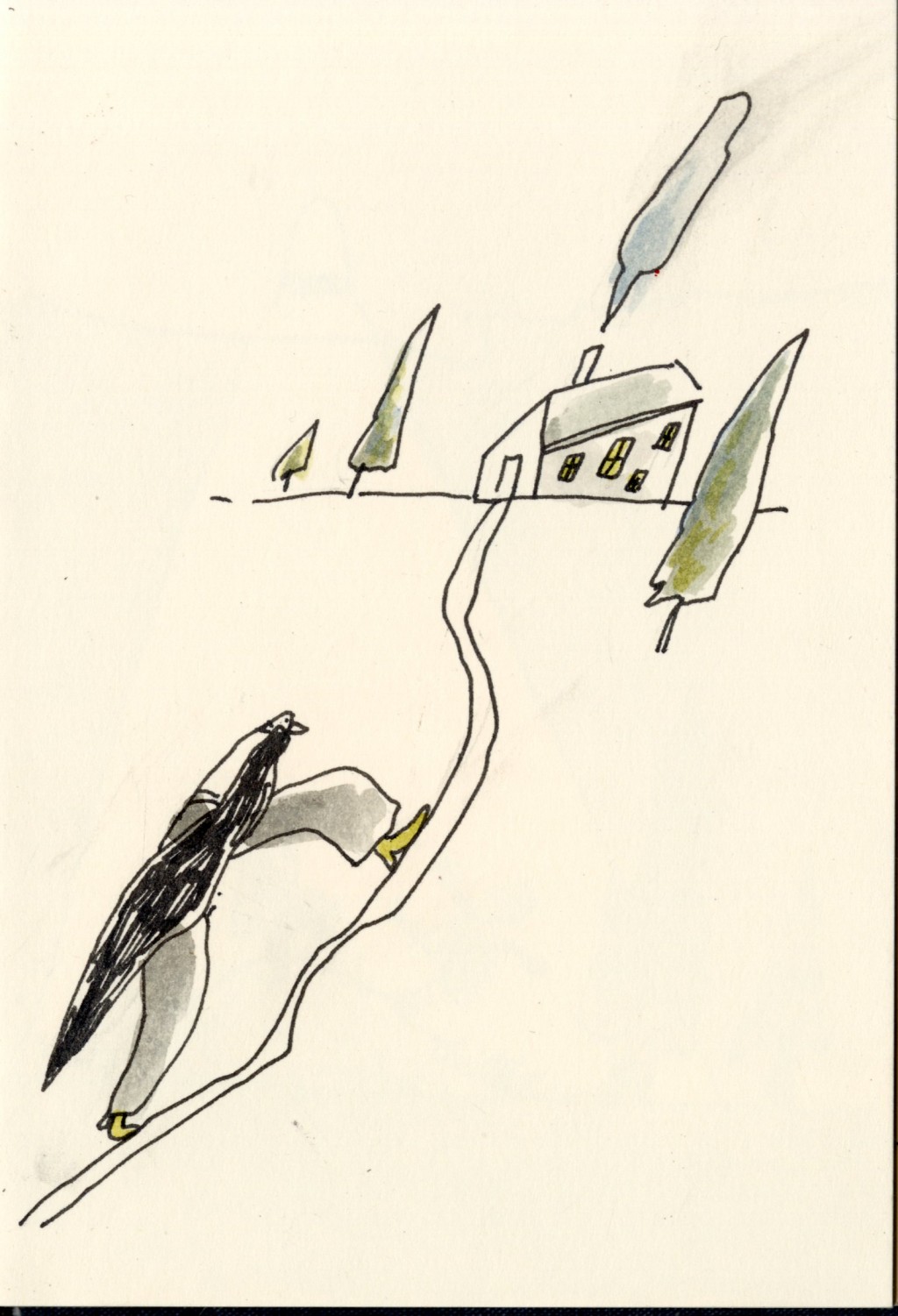 Grandfather was a clergyman and used to preach to the King. Once, before his children and his children's children and his children's children's children covered the face of the earth, Grandfather came to a long field which was surrounded by forests and hills so that it looked like Paradise. At one end it opened out into a bay for his descendants to bathe in. Then Grandfather thought, here will I dwell and multiply, for verily this is the Land of Canaan. Then Grandfather and Grandmother built a big two-storey house with a sloping roof and lots of rooms and steps and terraces and a huge veranda and placed plain wooden furniture everywhere inside and outside the house and when it was ready Grandfather began to plant things until the field became a Garden of Eden where he walked around in his big black beard. All he had to do was to point at a plant and it was blessed and grew until it groaned under its own weight. - Sculptor's Daughter by Tove Jansson #dailydrawing #tovejansson