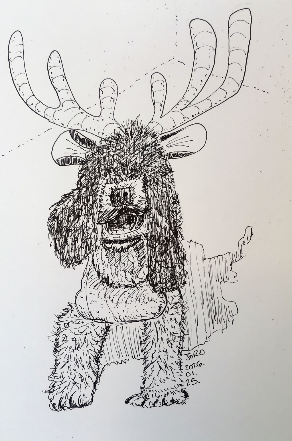 dog, doodling, drawing, illustration, pen and ink, reindeer