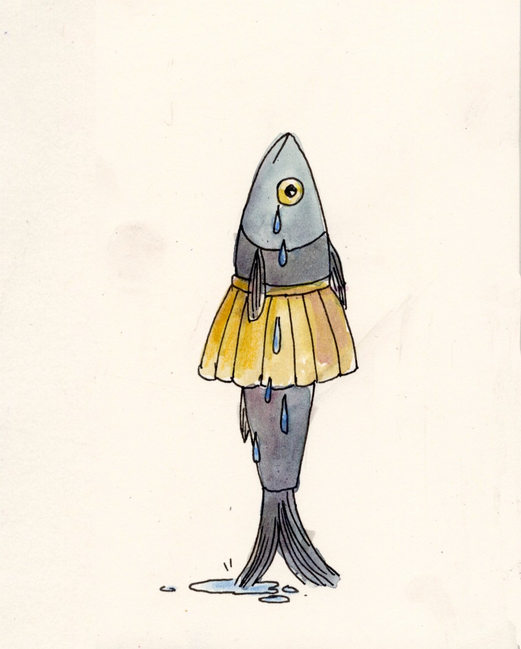 I know this is a piece of art about a book, but I would just like to tell this fish that she looks great in that skirt. This is some cool stuff you've been painting recently, too. I hope you're enjoying your book!