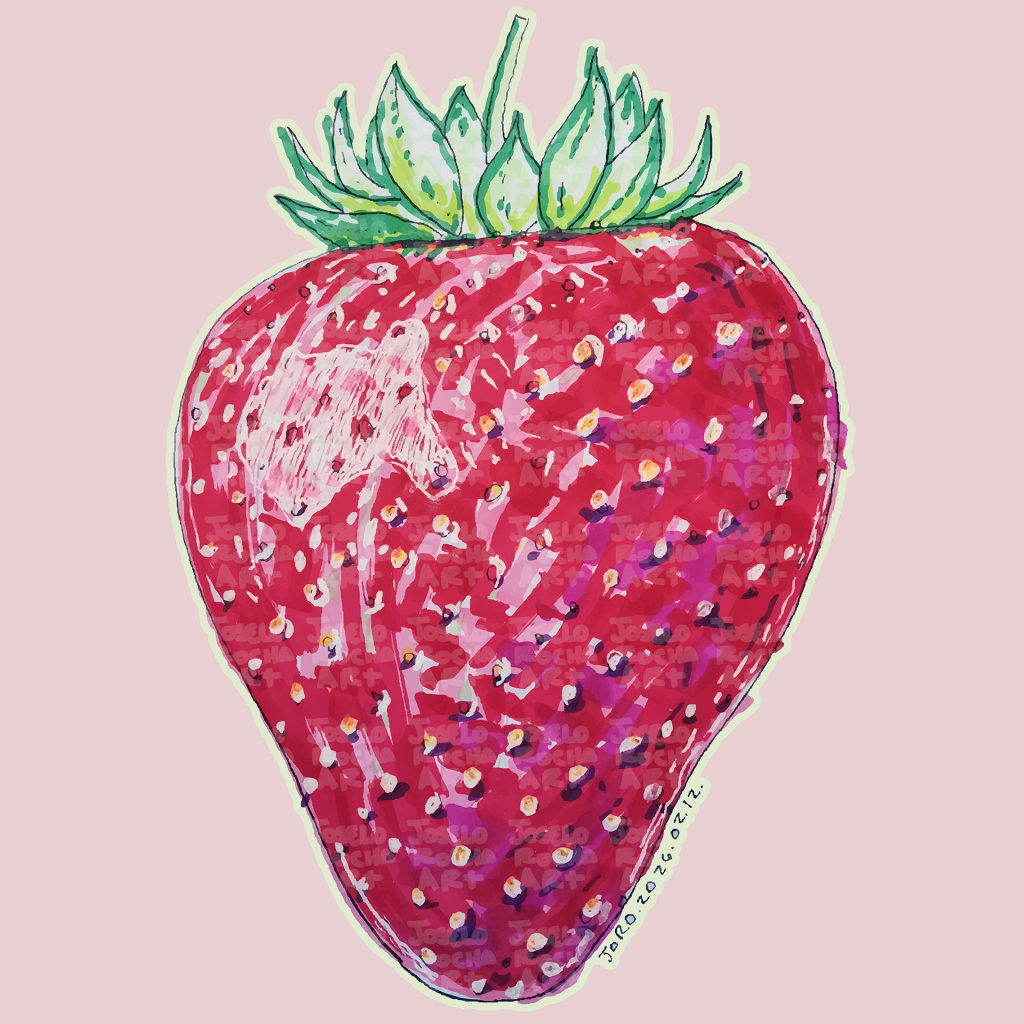 A vibrant, hand-rendered standing strawberry illustration featuring rich textures and expressive marker strokes. This piece captures the organic beauty of summer fruit through a modern, illustrative lens.
