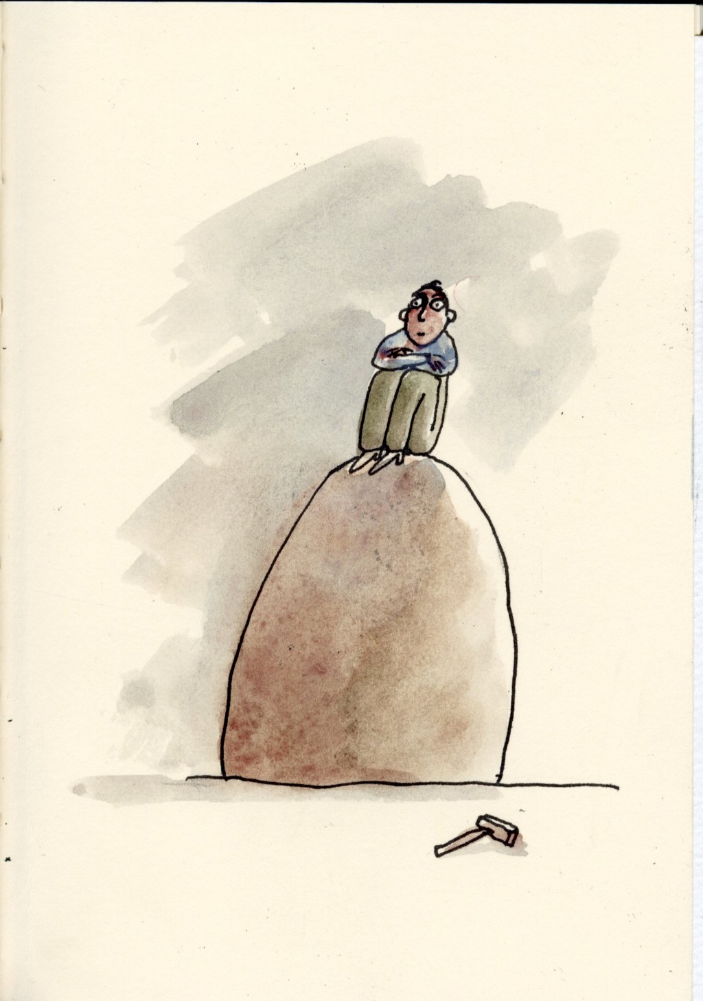 One year towards autumn a geologist was living in the pilots' hut. He couldn't speak either Finnish ow Swedish, he just smiled and flashed his black eyes. He would look at people and immediately make them feel how surprised and happy he was to meet them at last and then he just walked on with his hammer and hammered a rock here and there. His name was Jeremiah. - Sculptor's Daughter by Tove Jansson #dailydrawing #tovejansson