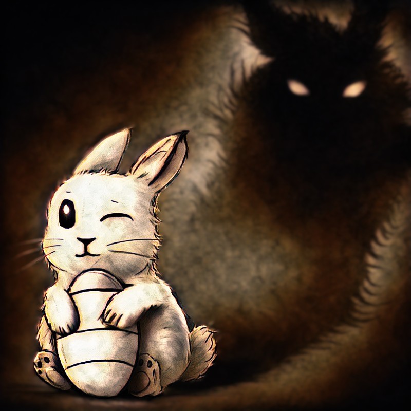 @robotsketches Hello! Iv been alright. I have been trying to learn the "bean method" with drawing people and it has been stressing me out a bit. How about you? This drawing is about being careful for things are not always what they appear to be. (Shadow showing the bunnies true form). Thanks for commenting and as always I appreciate the support!