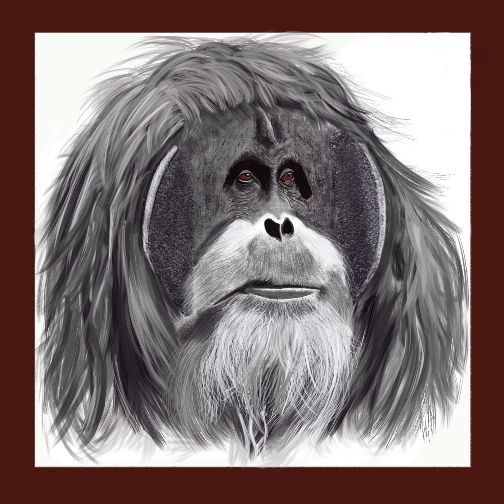 Orangutan sketch (Original Dimensions: 3000x3000px x 300DPI) to try out my new iPad Air M2 13 using both iArtbook Pro and Artstudio Pro artist apps. This iPad is awesome for power and quickness. Here are three main facts about adult male orangutans: 1. **Physical Characteristics**: Adult male orangutans are significantly larger than females, with an average height of about 1.2-1.5 meters (4-5 feet) and weighing around 50-100 kg (110-220 lbs). They develop distinctive physical features such as large cheek flanges (fleshy pads) and a throat pouch, which they use to produce long calls to communicate across the dense forests. 2. **Solitary Lifestyle**: Unlike many primates, male orangutans are solitary creatures. They spend most of their lives alone, except during brief periods of mating. This solitary behaviour reduces competition for food and other resources. The males will range widely and have large territories that often overlap with the ranges of several females. 3. **Long Call**: Adult male orangutans have a unique and powerful long call that can be heard over great distances. This call is used to establish territory and attract females. The call consists of a series of roars, grunts, and bellows, and it serves to warn other males of their presence, helping to maintain social hierarchy and reduce conflicts.