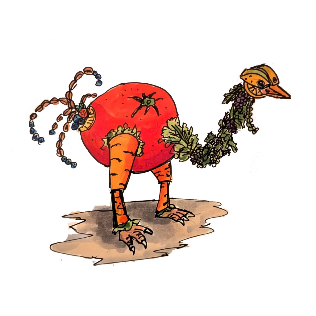 FOOD BIRD! What sound would that make? Wait. It's made of food. Food doesn't make noise Σ(ಠ_ಠ)