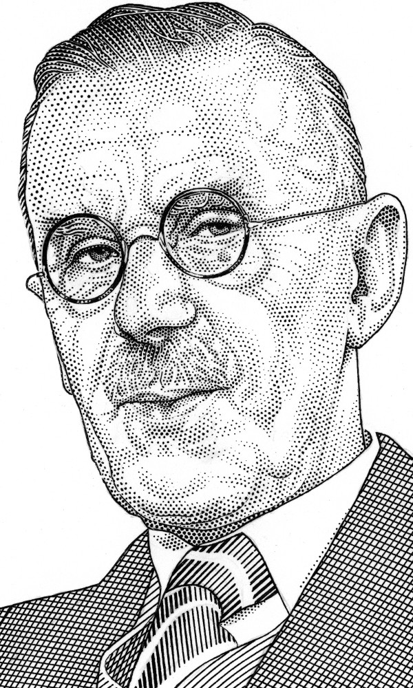 Pen & ink stipple portrait of Thomas Mann.