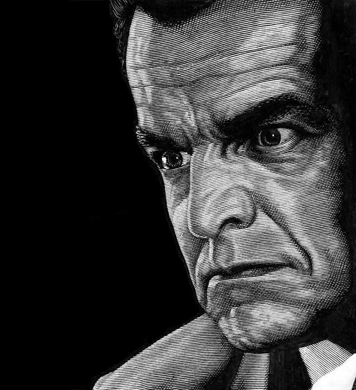 Pen & ink portrait of Leland Palmer from Twin Peaks.