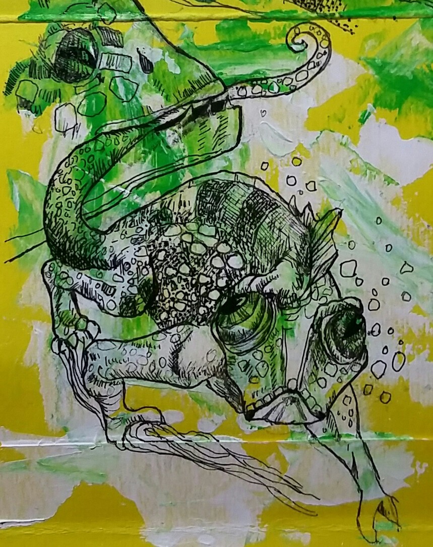 I made a collage of my favourite tree, a baobab, using postage stamps. The wild dog puppy seemed to creep in from somewhere!