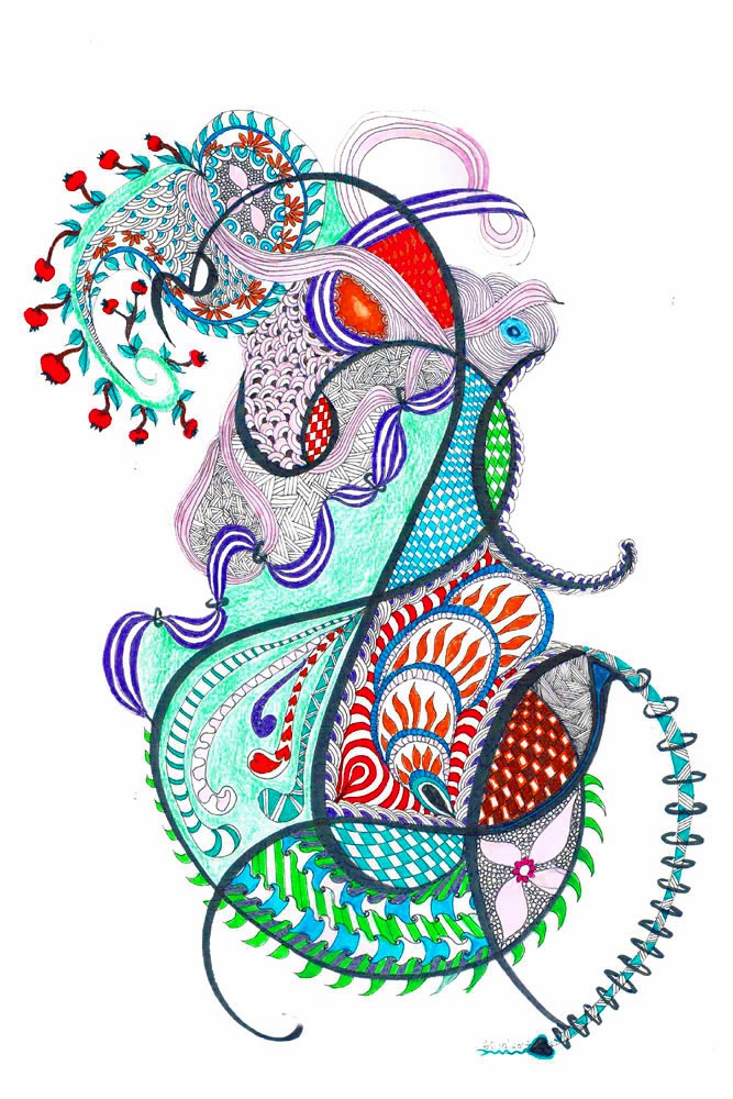I spotted a huge line drawing on YouTube. I was curious about how it feels to draw just lines over and over again. The one on the web was four times as big as this one (on A3 paper). Half way through I started to nod off. Next morning I thought the green