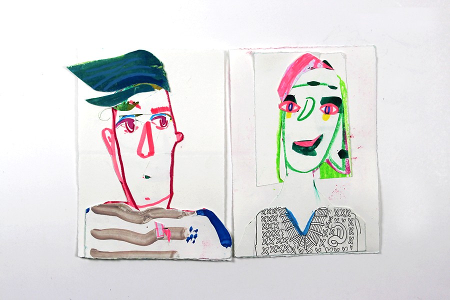 Watercolor and crayon on bits and pieces of paper