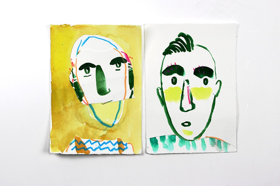 Collage of watercolor, colored pen and crayon snippets.