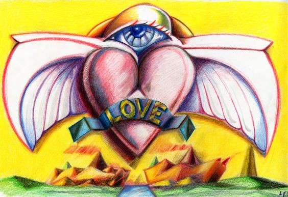 Colored pencil inspired by Budgie album covers done by Patrick Woodroffe.