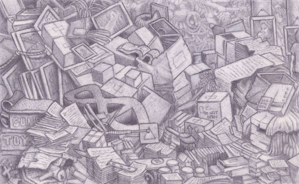 Recently, I've been experimenting on how dreams are formed and drawing. Raw doodling is a form of this, done without thought, but I tried a different way that hints at "surrealist automatism." However, surrealist automatism can become too controlled in itself at times. I needed to make sure that wouldn't happen and that the imagery would be random and form the same way a dream would. The only way I could do this was with random shading, which would then be built up until shapes took form. It meant that the artwork itself took alot longer to do, but the results are quite good.